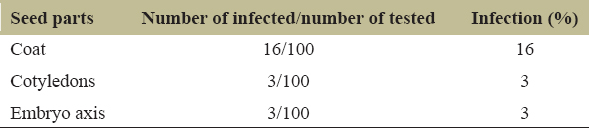 | Seed parts | Number of infected/number of tested | Infection (%) |