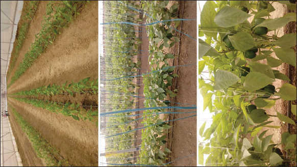 The temperature inside the polyhouse was optimized up to 25°C with a relative humidity of around 65% by running the foggers for 5 min as and when the leaves become dry (at an interval of 2–5 h) during day time. The soil condition was suitable for the cultivation of capsicum with pH of 7.6 and electrical conductivity of 0.32 ds/m; however, the organic carbon (45%) and available nitrogen (197 Kg/ha) were low with moderately available phosphorus (19 Kg/ha) and potassium (241 Kg/ha).