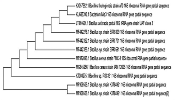 The screened strain was checked for its morphological and biochemical characteristics and it was confirmed as B. paralicheniformis after 16s rRNA sequence analysis [Figure 2].
