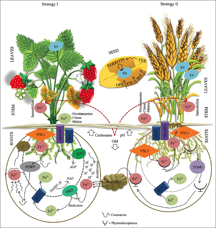 | Figure 3: Mechanisms of iron uptake and transport in plants. [Click here to view] |