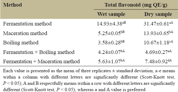 | Method | Total flavonoid (mg QE/g) | |