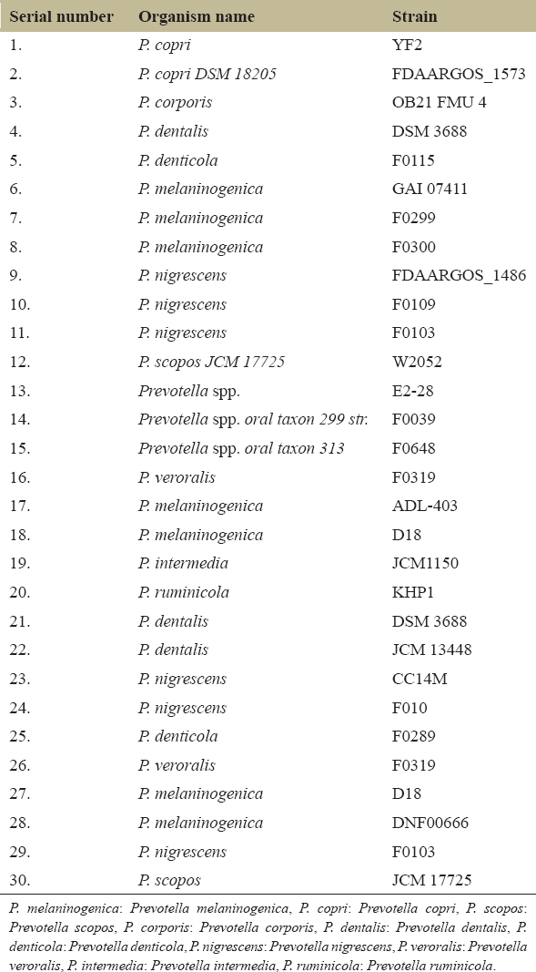 | 3. | P. melaninogenica GAI 07411 | 3 | 3 | 0.2 | |
