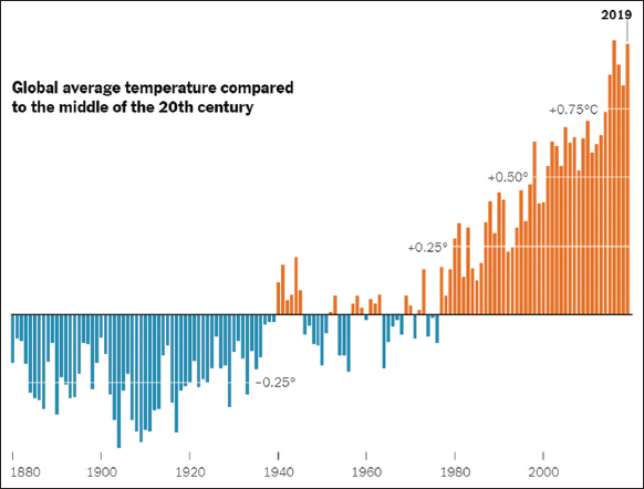 | Figure 3: The changes in global average temperature from 1880 to 2019. [Click here to view] |