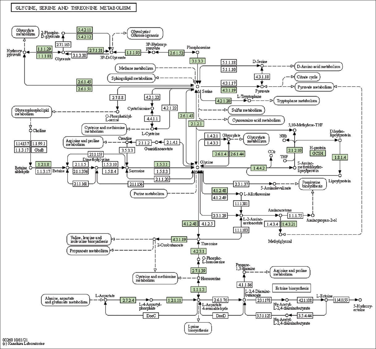 | 7 | 260 | Glycine, serine, and threonine metabolism | 29 |