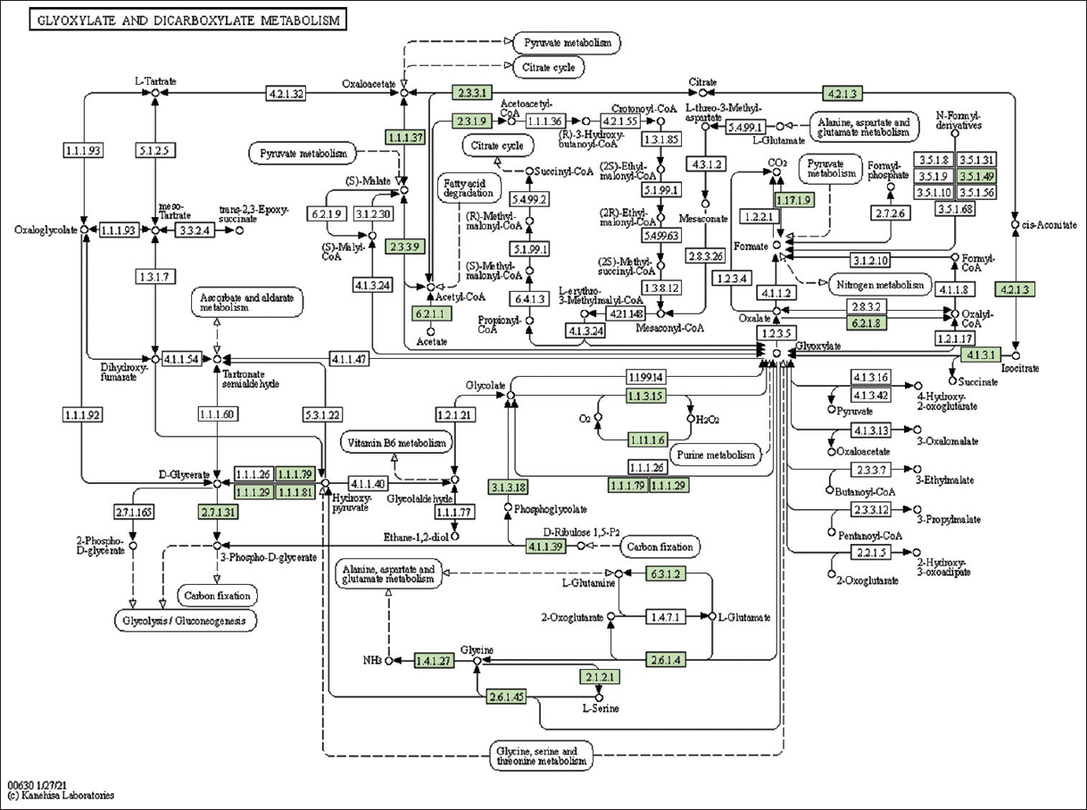 | 8 | 630 | Glyoxylate and dicarboxylate metabolism | 28 |