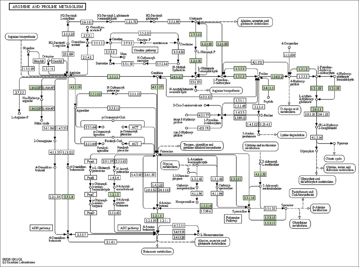 | 12 | 330 | Arginine and proline metabolism | 22 |