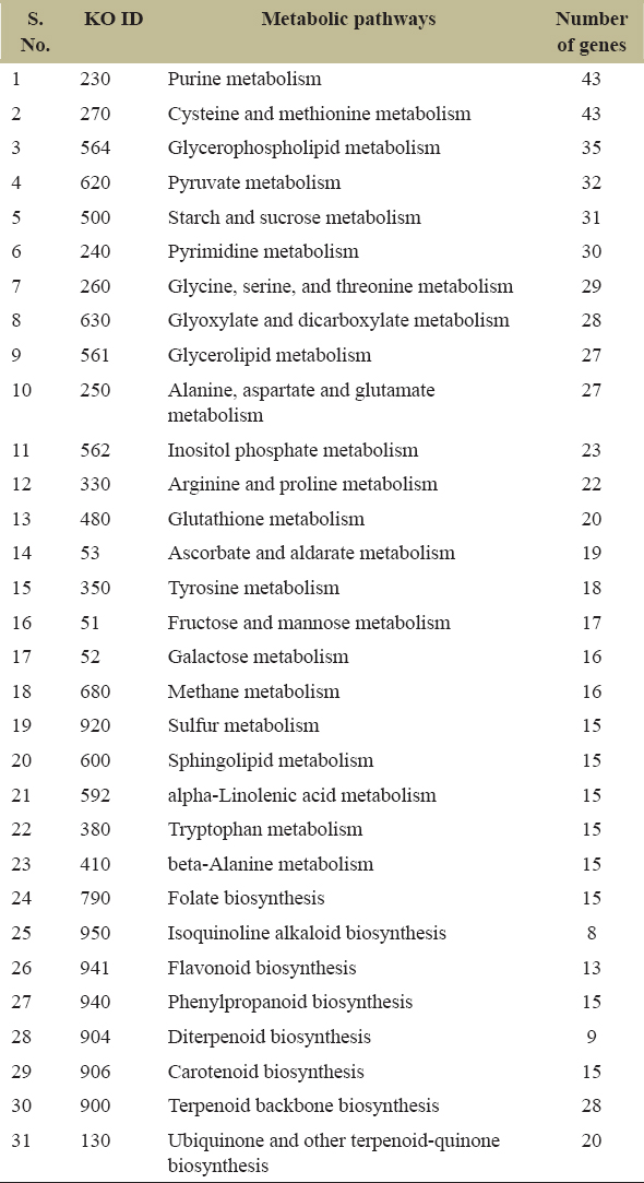 | S. No. | KO ID | Metabolic pathways | Number of genes |