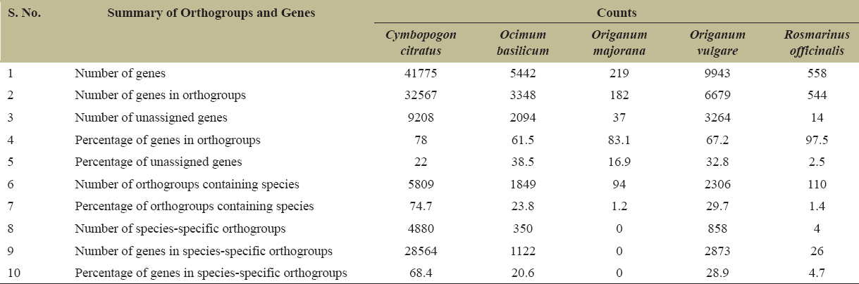 | S.No. | Summary of orthogroups and genes | Counts |