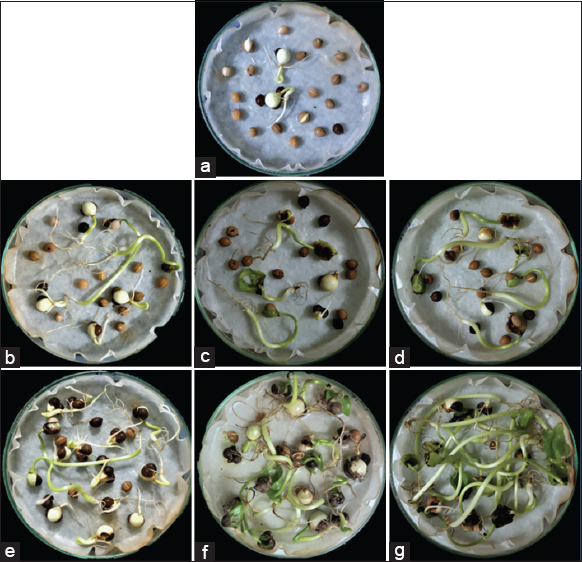 Seedling growth and development during germination totally depend on energy stored in the seed. For a successful seedling establishment, seedling growth is a crucial factor. Following growth parameters of 20-day-old seedlings were used to choose a healthy one for further experiment [Figure 3 and Table 2].