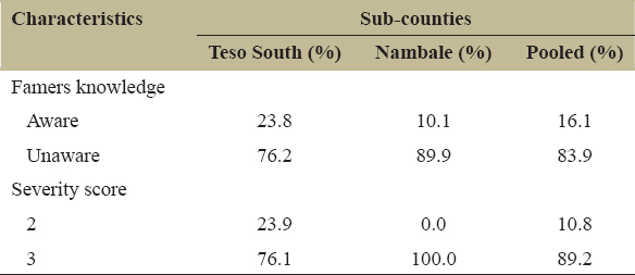 | Figure 1: Sociodemographic characteristics of cassava farmers in Busia County. [Click here to view] |