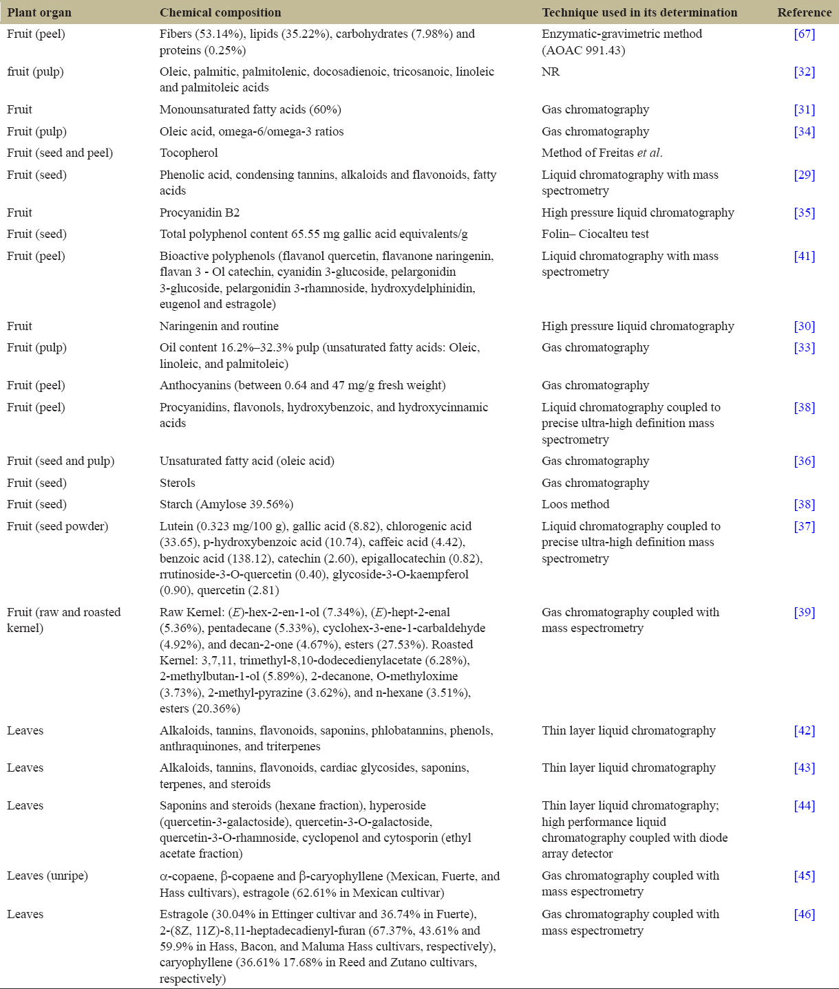 5. Yasir M, Das S, Kharya M. The phytochemical and pharmacological profile of Persea americana Mill. Pharmacogn Rev 2010;4:77-84.[CrossRef]