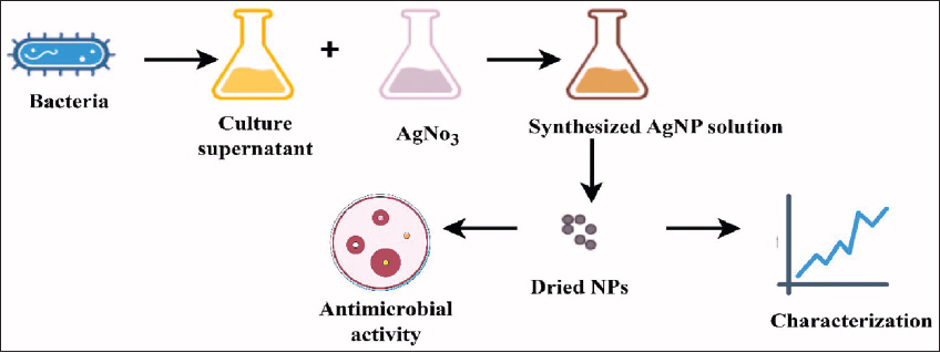 | Figure 1: Schematic representation of the synthesis of silver nanoparticles. [Click here to view] |