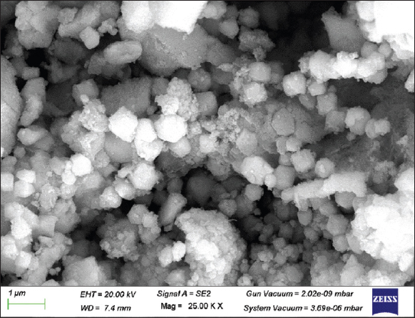 | Figure 6: Scanning electron microscopy image of silver nanoparticles synthesized using cell-free supernatant of Enterobacter mori C-29(1)CG. [Click here to view] |