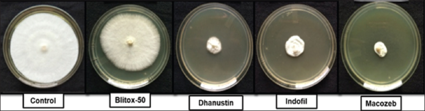 | Figure 8: In vitro antifungal activity of synthetic fungicides. [Click here to view] |