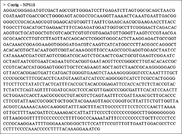 | Figure 7: 16S rRNA partial gene sequence of NPS-18. [Click here to view] |