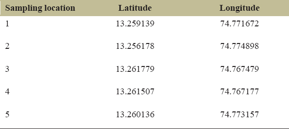 Table 1: Details of sampling locations chosen in the present study.