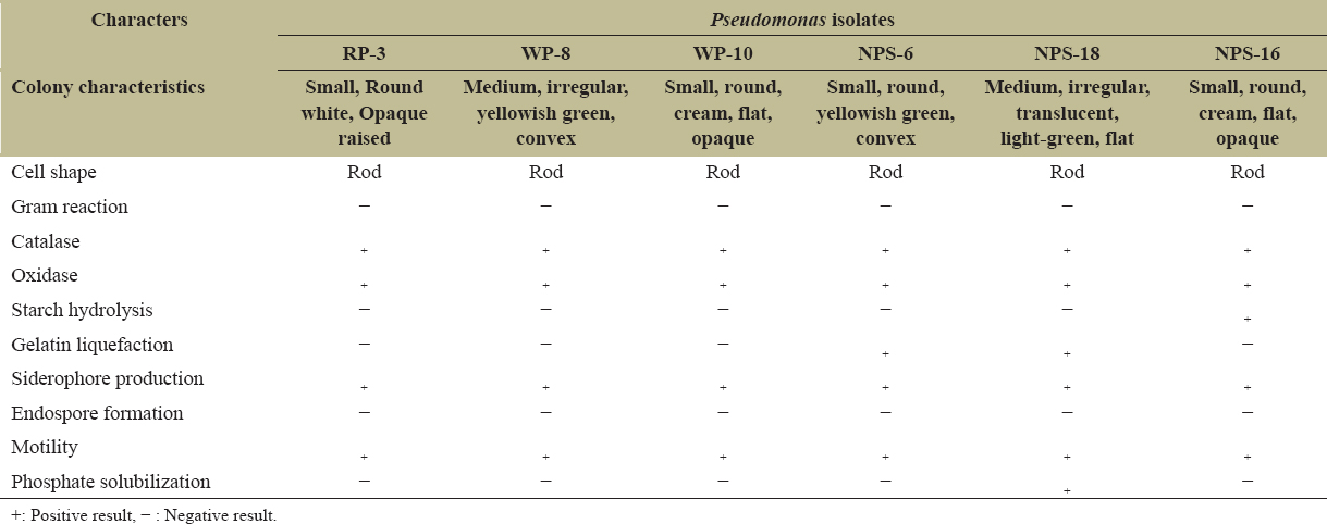 | Characters | Pseudomonas isolates | |||||