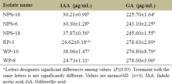 | Isolate name | IAA (µg/mL) | GA (µg/mL) |