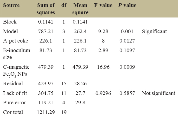 | C-magnetic Fe2O3 NPs | 479.39 | 1 | 479.39 | 16.96 | 0.0009 | |