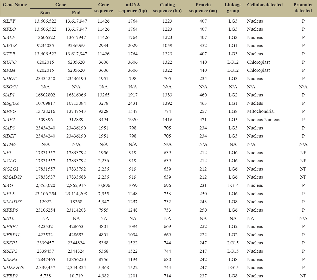 Table 2: Characteristic features of 32 putative floral homeotic gene sequences identified in sesame.