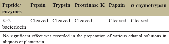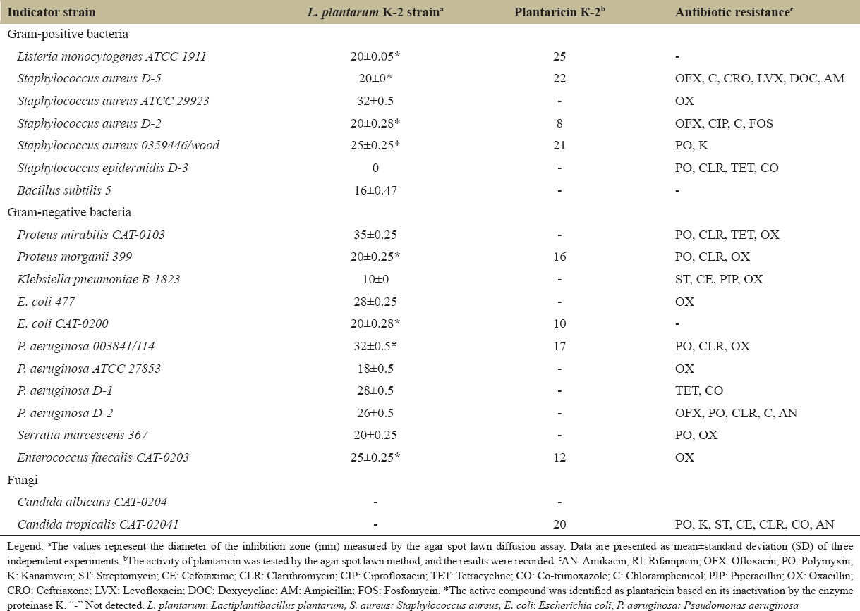 Table 1: Antimicrobial activity of L. plantarum strain K-2 and plantaricin K-2.