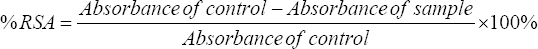 The limits of detection (LOD) of the DPPH assay used in this study was approximately 0.25% RSA. Values below this threshold were considered undetectable and are reported as