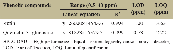 HPLC-DAD: High-performance liquid chromatography-diode array detector, LOD: Limit of detection, LOQ: Limit of quantification