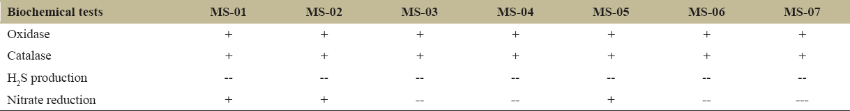 | Biochemical tests | MS-01 | MS-02 | MS-03 | MS-04 | MS-05 | MS-06 | MS-07 |