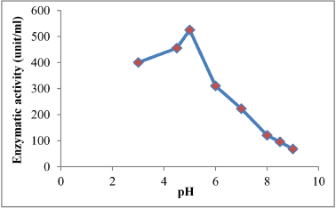| Figure 5: Optimum pH for tannase activity. [Click here to view] |