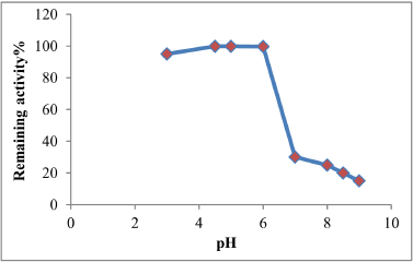 | Figure 6: Optimum pH for tannase stability. [Click here to view] |