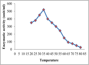 | Figure 7: The optimum temperature for tannase activity. [Click here to view] |