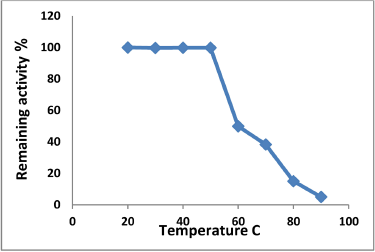 | Figure 8: The optimum temperature for tannase stability. [Click here to view] |