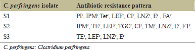 | Table 2: Antibiotic resistance patterns of C. perfringens isolates using Vitek 2 system and DDT [Click here to view] |