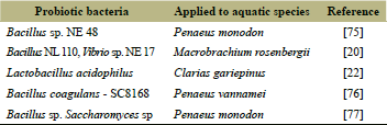 ![]() | Table 5: Probiotic bacteria used in shrimp aquaculture [Click here to view] |