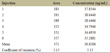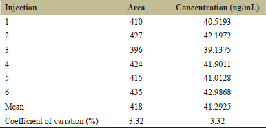 ![]() | Table 6: Results of the intermediate precision test [Click here to view] |