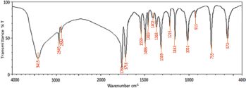 ![]() | Figure 9: FTIR spectrum represents narrow signals for pure EFLAE. [Click here to view] |