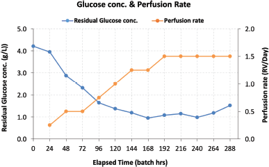 ![]() | Figure 3: Residual Glucose Concentration and Perfusion rate trend. [Click here to view] |
