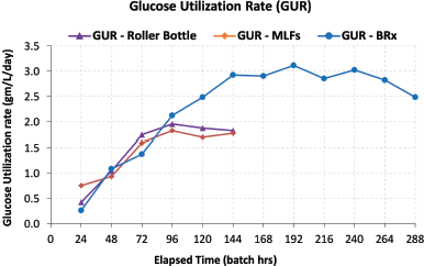 | Figure 4: Glucose Consumption rate of bioreactor run compared with control devices. [Click here to view] |