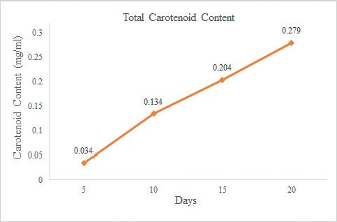 ![]() | Figure 1: Graph showing the carotenoid content during regular intervals. [Click here to view] |