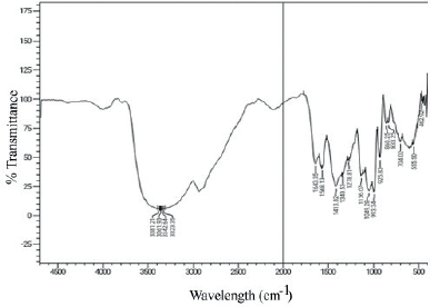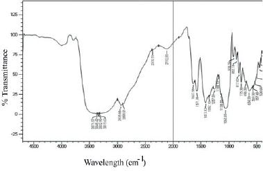 | Figure 4: FTIR of unfermented papaya fruit pulp. [Click here to view] |