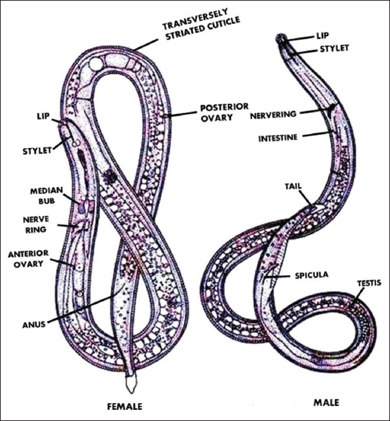 | Figure 1: Morphology of male and female root-knot nematodes. (Source: Handoo et al., 2004) [Click here to view] |