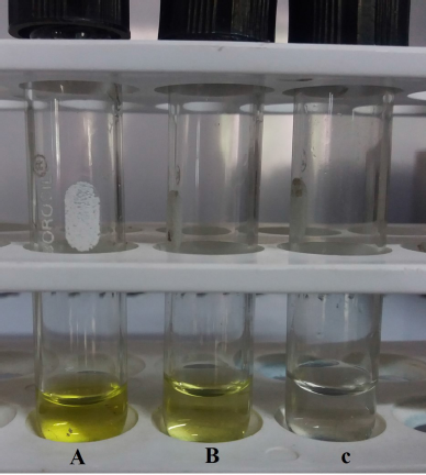 ![]() | Figure 3: Qualitative analysis using ONPG test disc to examine the production of β-galactisidase enzyme by (A) L. plantarum MBTU-HK1, (B) MBTU-HT and (C) Control. [Click here to view] |