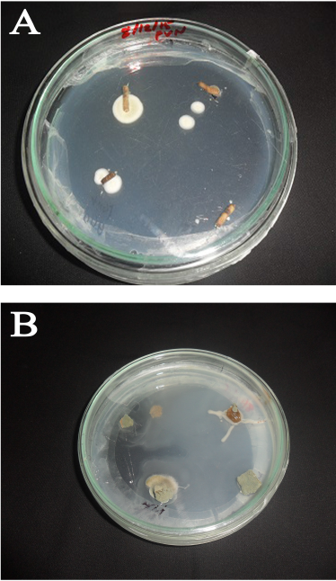 ![]() | Figure 1: Endophytic fungi emerging from (a) L. toxicaria and (b) K. rotunda rhizomes in PDA plates. [Click here to view] |