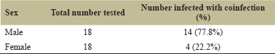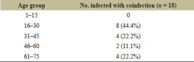 ![]() | Table 4. Incidence of coinfection in the age groups. [Click here to view] |