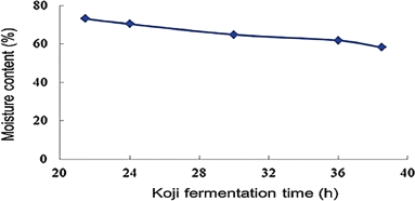 ![]() | Figure 3: Changes in the moisture content of koji according to incubation time. [Click here to view] |
