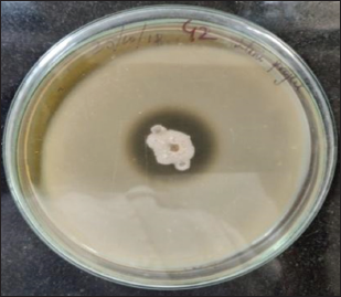 ![]() | Figure 1: Proteolytic activity demonstrated by Bacillus cereus PW3A. Zone of Clearance indicates hydrolysis of the substrate casein. [Click here to view] |
