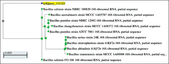 ![]() | Figure 3: Phylogeny of KKSC12 (Bacillus safensis). [Click here to view] |