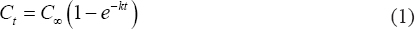 where, Ct is the percentage of starch hydrolyzed at time t (min), C∞ is the equilibrium percentage of starch hydrolyzed after final time and k is the first-order rate constant.