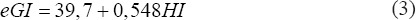The hydrolysis index (HI) was calculated by dividing the AUC of each sample by the AUC of the reference sample (white bread). eGI was then calculated using the equation of Goni et al. [17] (Eq. 3).
