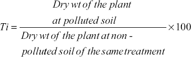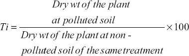 Ti of AM and non-AM plants to heavy metal (Cd) stress in soil was determined using the following formula [22].